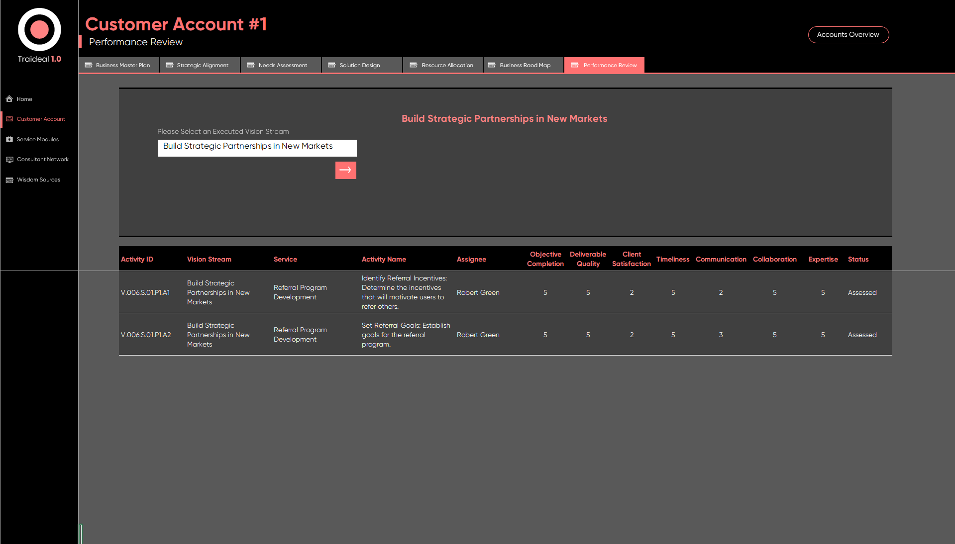 Monitor activities with detailed performance reviews and leverage shared wisdom from our consultant network